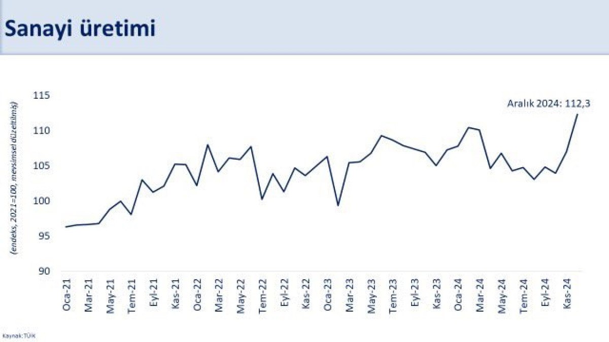 Sanayi üretiminde geçen yılın ikinci ve üçüncü çeyreğindeki daralmanın ardından son çeyrekte yüzde 3,4’lük kuvvetli bir artış gerçekleşti. Böylece sanayi üretimi yıl genelinde yüzde 0,4 arttı.