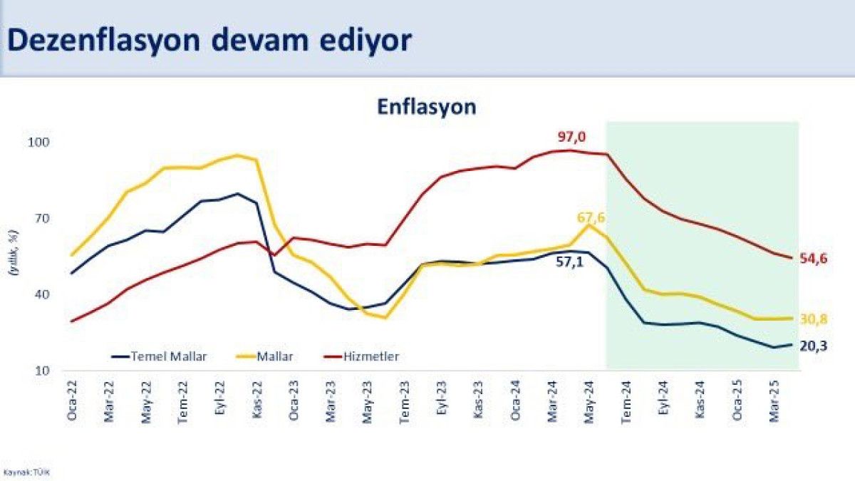 Yıllık enflasyon 11 aydır geriliyor, dezenflasyon süreci devam ediyor.