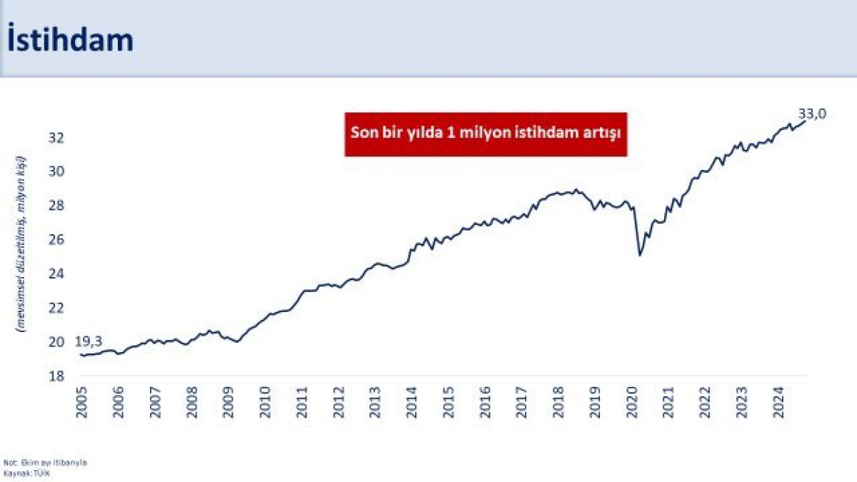 İşgücü piyasası bu gelişmeye rağmen dayanıklılığını sürdürüyor. Son bir yılda istihdam 1 milyonun üzerinde arttı. İşsizlik oranı mevsimsel düzeltilmiş olarak ekimde yüzde 8,8 gerçekleşti.