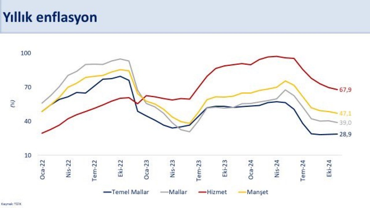 Son iki aydır yüksek seyreden gıda enflasyonuna rağmen yıllık mal enflasyonu yüzde 40’ın altına geriledi.” dedi.