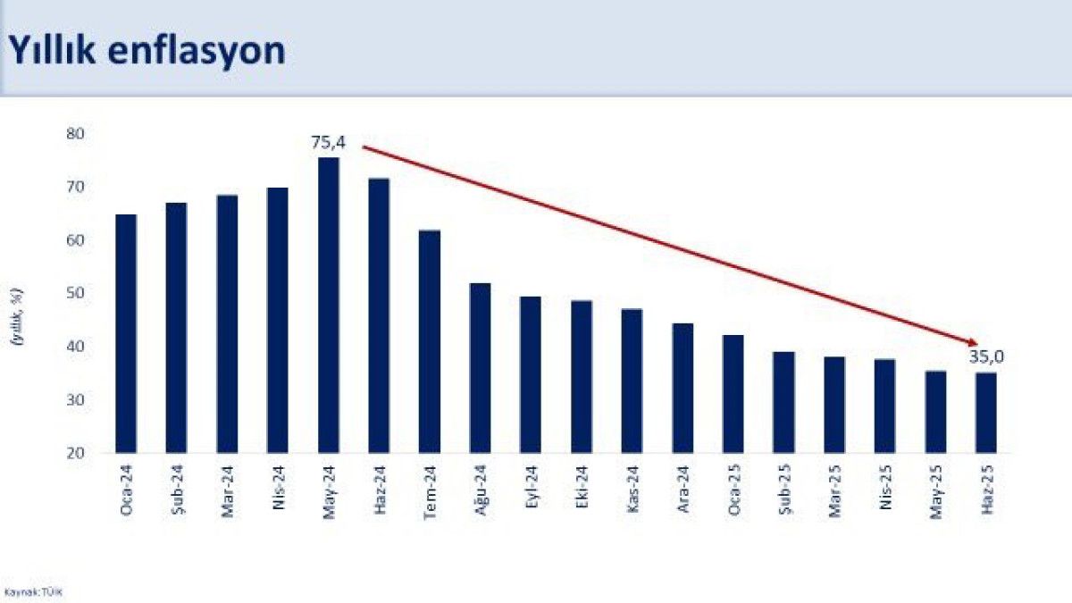 Haziranda aylık enflasyon, jeopolitik gerginlikler nedeniyle artan petrol fiyatlarına karşın yüzde 1,37 gerçekleşti. Dezenflasyonun devam ettiği haziranda yıllık enflasyon yüzde 35’e geriledi.