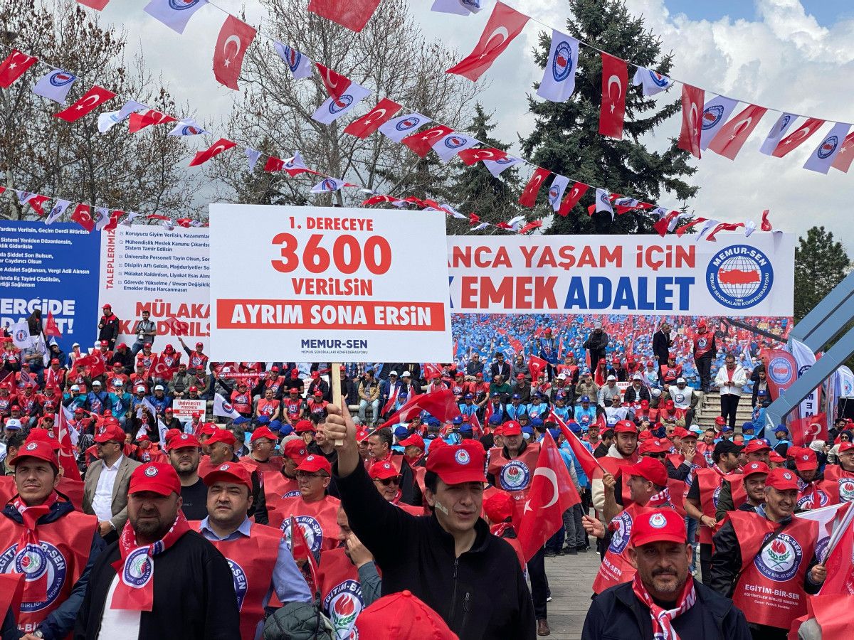 MEMUR Sendikaları Konfederasyonu (MEMUR-SEN) üyeleri, Ankara’da 13 yıl ortanın akabinde 1 Mayıs Emek ve Dayanışma Günü’nde bir ortaya geldi.