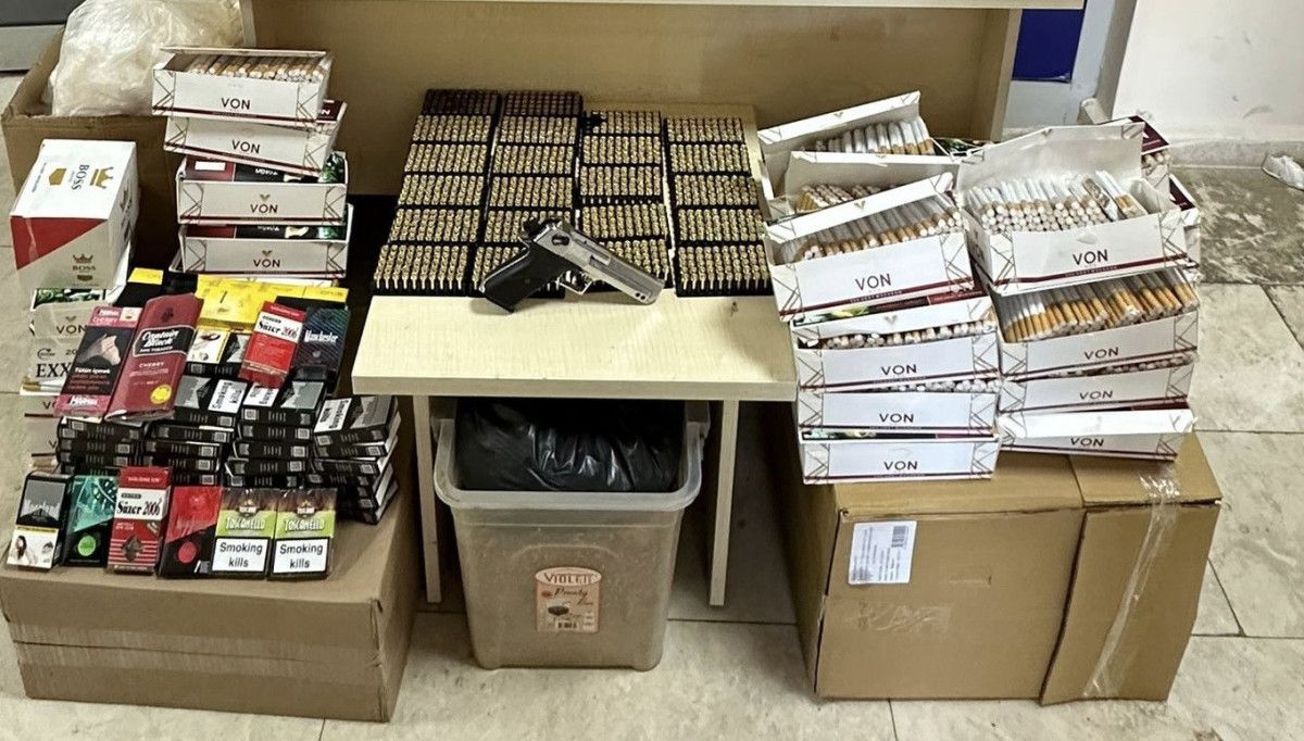 Yakalanan şüphelilerden toplamda 10 bin adet dolu makoron, 600 adet boş makaron, 226 paket kaçak sigara, 43 adet pro, 71 paket tütün, 40 adet elektronik sigara aygıtı,34 kilogram kıyılmış tütün, 1 adet kurusıkı tabanca, bin 148 kurusıkı mermisi ve çeşitli elektronik sigara gereçleri ele geçirildi.