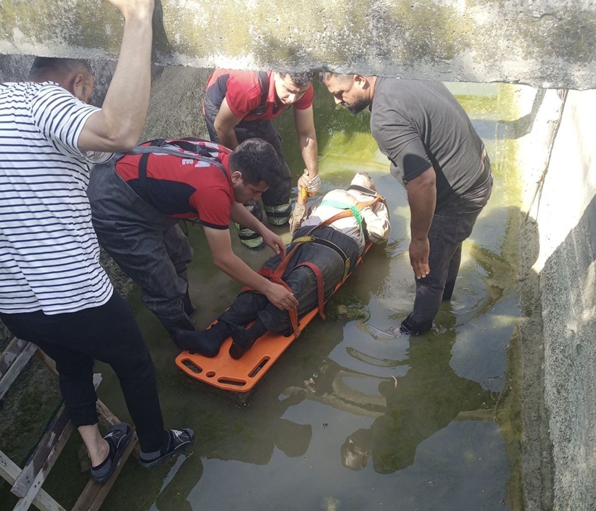 İtfaiye takımlarınca sulama kanalından çıkarılan Gündoğdu’nun ayağının kırıldığı belirlendi.