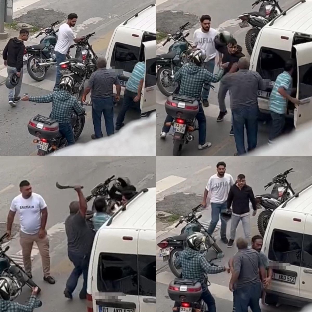Mersin’in Tarsus ilçesi Yeşilyurt Mahallesi’nde meydana gelen olayda, trafikte iki motosikletle bir hafif ticari araç şoförü tartışmaya başladı.