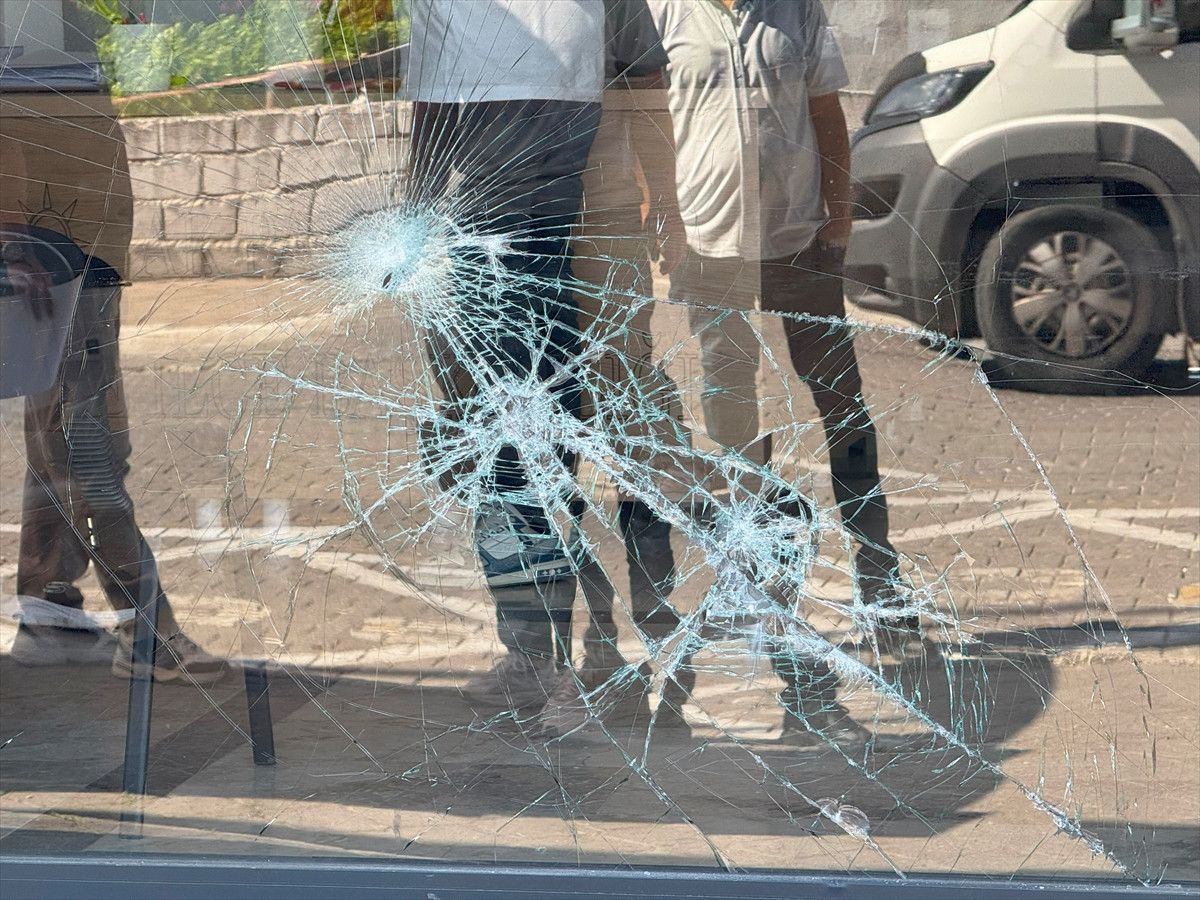 Saldırı sonucu binanın giriş kapısındaki cam ziyan gördü.