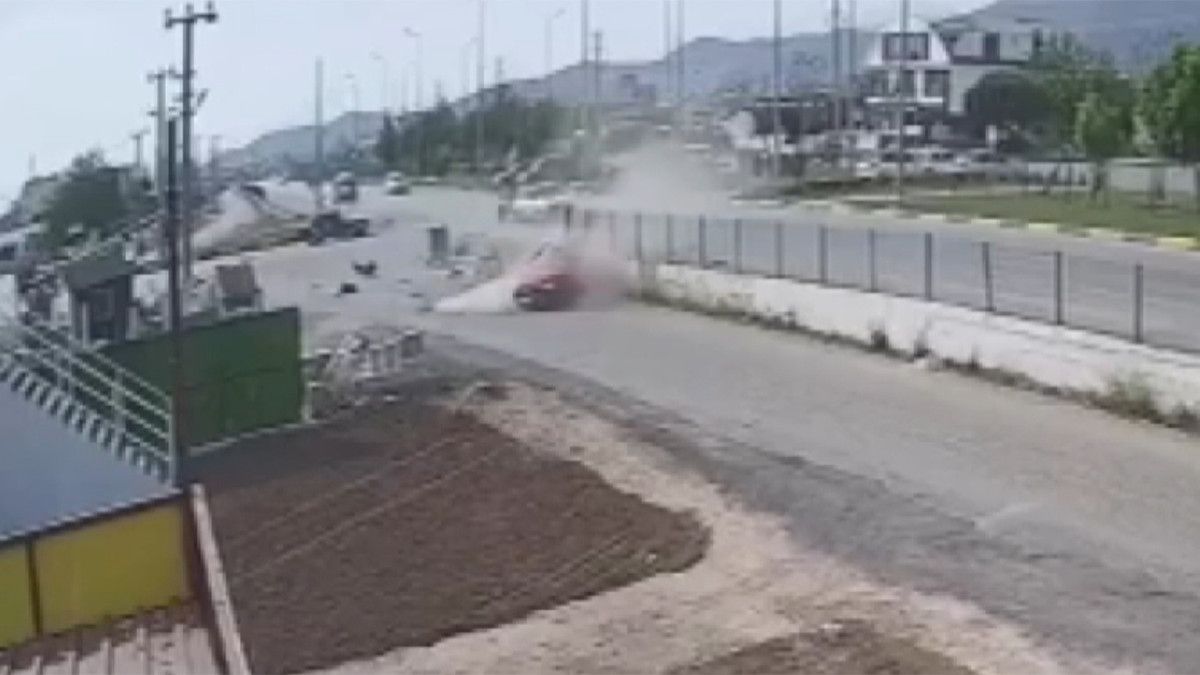 Muğla’nın Fethiye ilçesi Çamköy Mahallesi’nde Habibe Yakar Erdoğan idaresindeki araba, gerisinde römork bulunan arabanın kavşaktan ansızın yola çıkması nedeniyle denetimden çıktı.