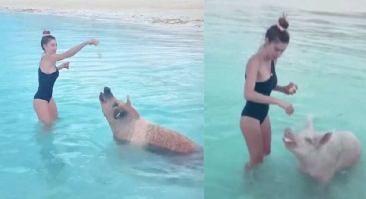 Acun Ilıcalı’nın eski eşi Şeyma Subaşı, Bahama tatili sırasında yaklaşık 30 yıldır doğal ortamda yaşayan domuzları beslemeyi ihmal etmemişti.