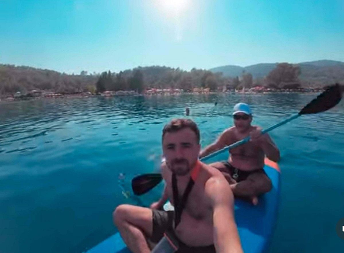 Öte yandan, Tarakçı ve arkadaşı Turan’ın kürek sörfü ile denize açılma anları bir işletmenin güvenlik kamerasına da yansıdı.