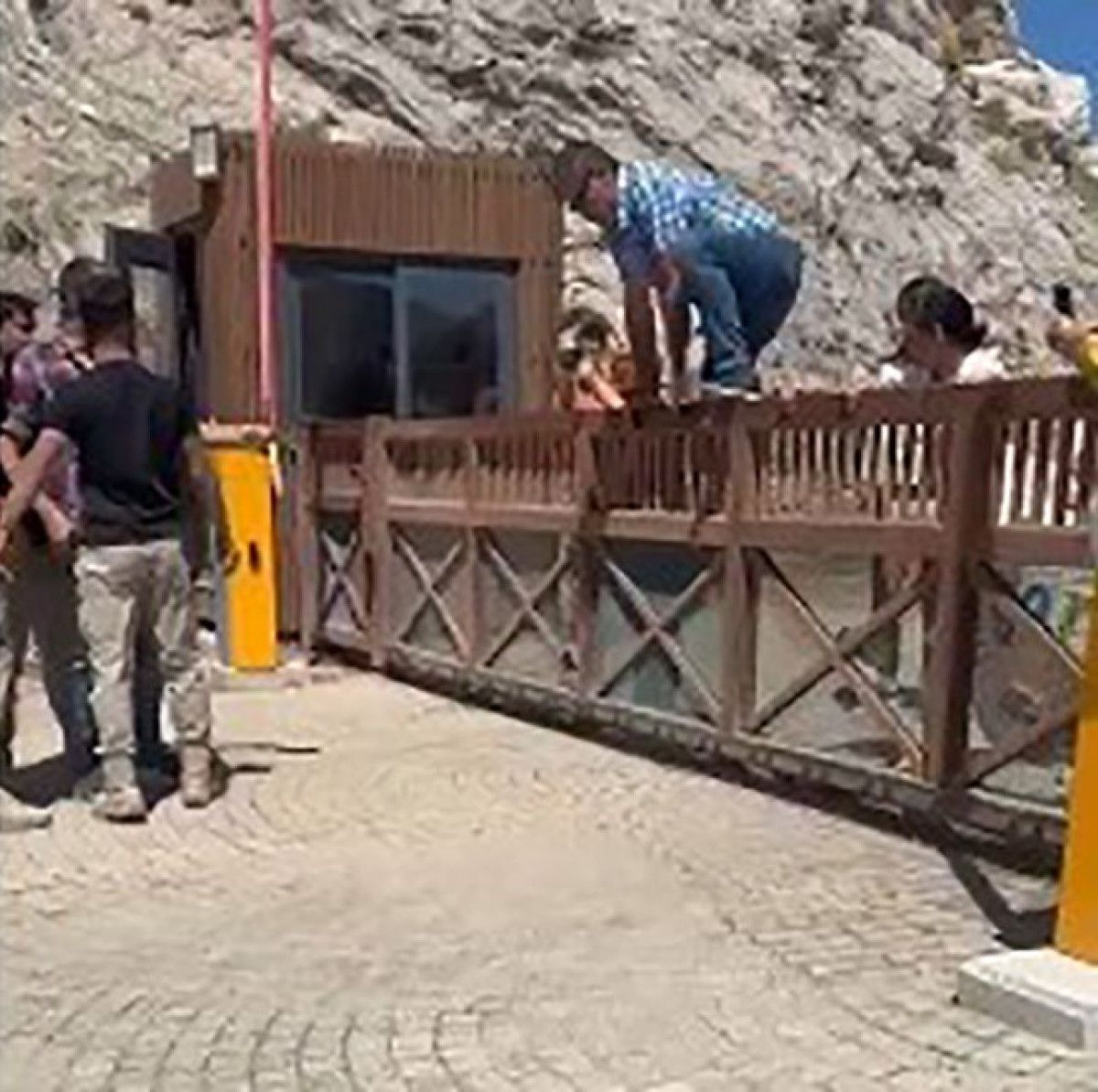 Bu sırada bölgeye gelen şahsılardan kimileri sürgülü kapının üzerinden atlayarak içeri girdi.