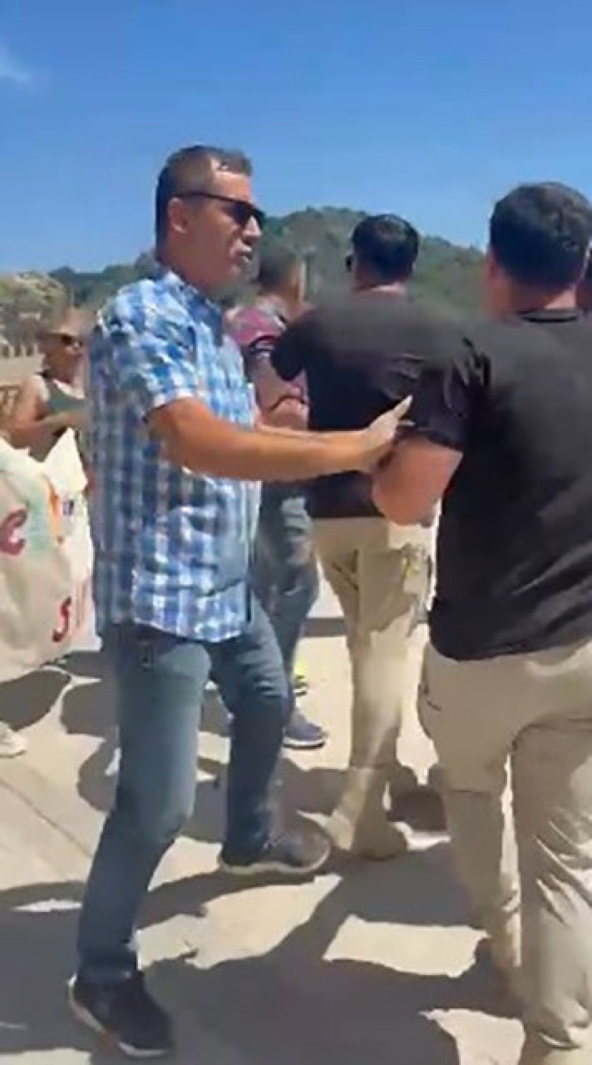 Yaşanan gerginlikte gruptakilerden biri güvenlik görevlisini tokatladı.