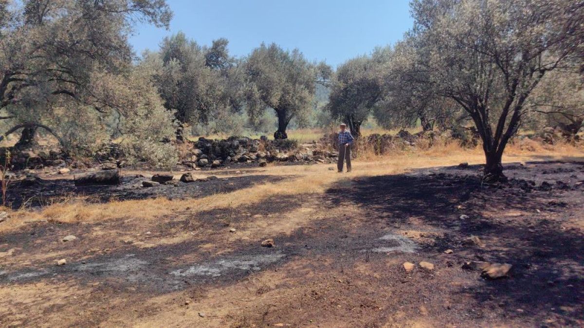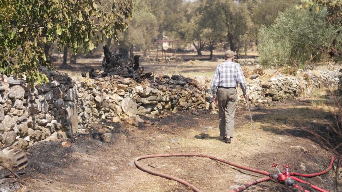 Antik kent sonları içerisindeki meskeninde yaşayan 94 yaşındaki duyma ve konuşma zahmeti çeken Durmuş Tandır, bölgeye gelerek yangın bölgesindeki bahçelerini görmek istedi.
