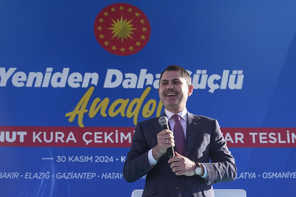 Murat Kurum, törendeki konuşmasında, “2025’in sonuna girdiğimizde evine girmeyen tek bir afetzede kardeşimiz kalmayacak.” dedi.