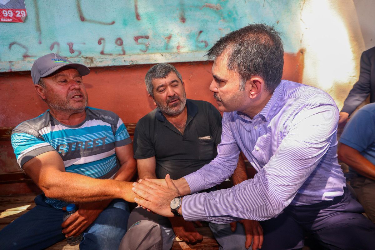 Bakan Kurum, yangının akabinde bölgede hasar gören köyleri ve ziyana uğrayan vatandaşları ziyaret etti.