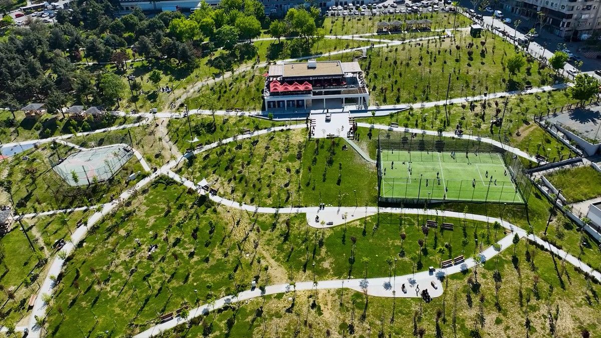 Millet bahçesinde farklı çeşitte 2 bin 30 ağaç, yürüyüş yolları, kafeterya ve spor alanları, toplumsal donatılar, basketbol alanı, otopark ve kütüphane bulunuyor.