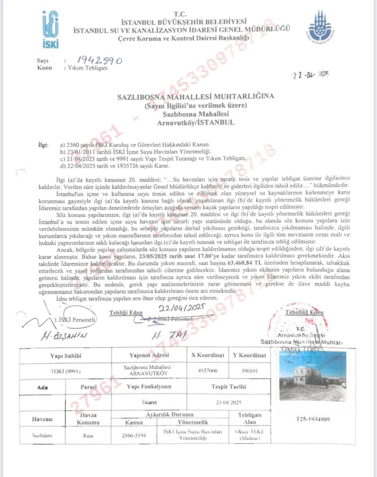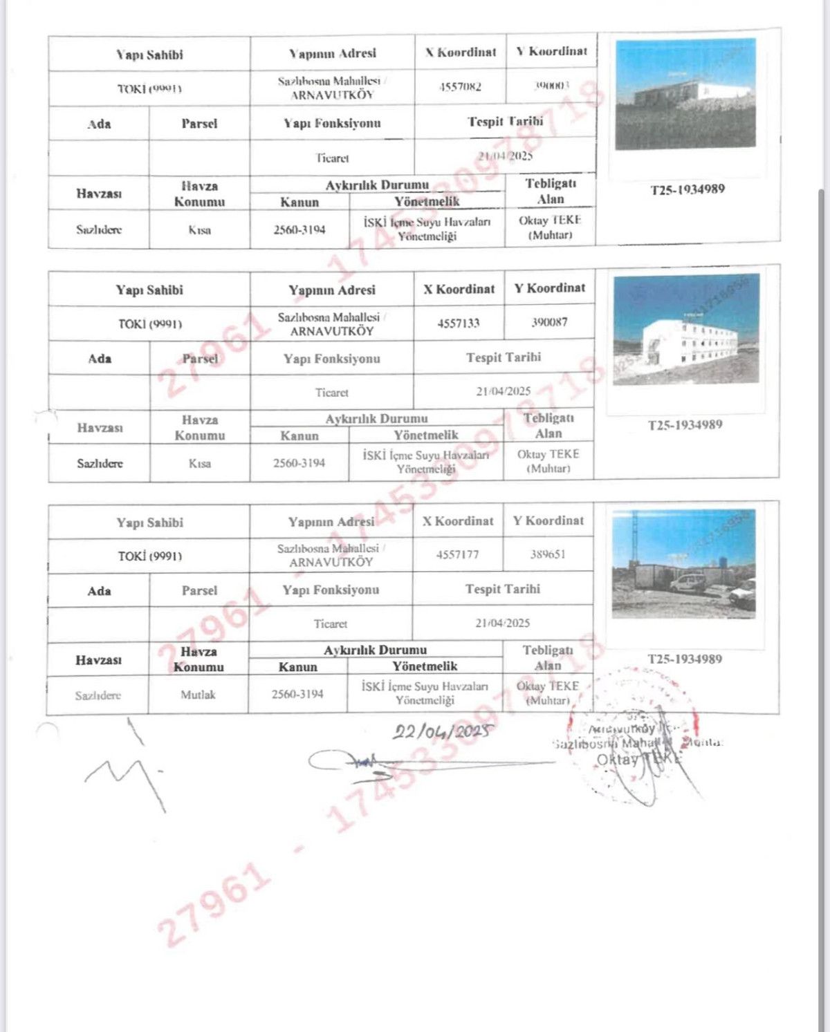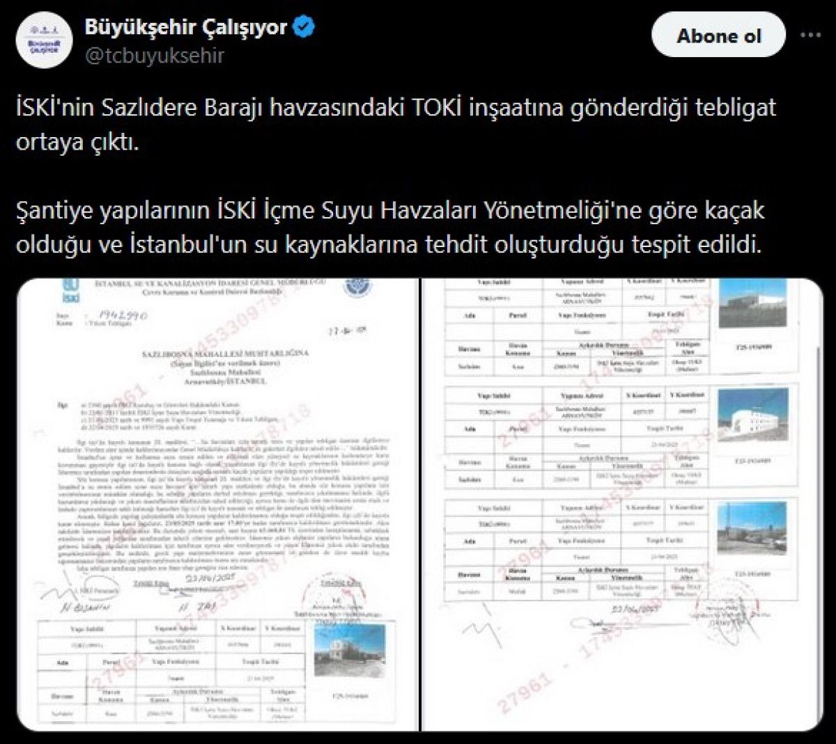 İSKİ’nin Sazlıdere Barajı havzasındaki TOKİ inşaatına gönderdiği tebligat ortaya çıktı.