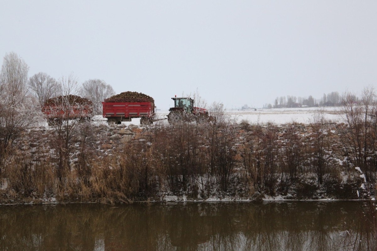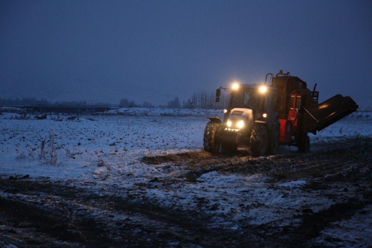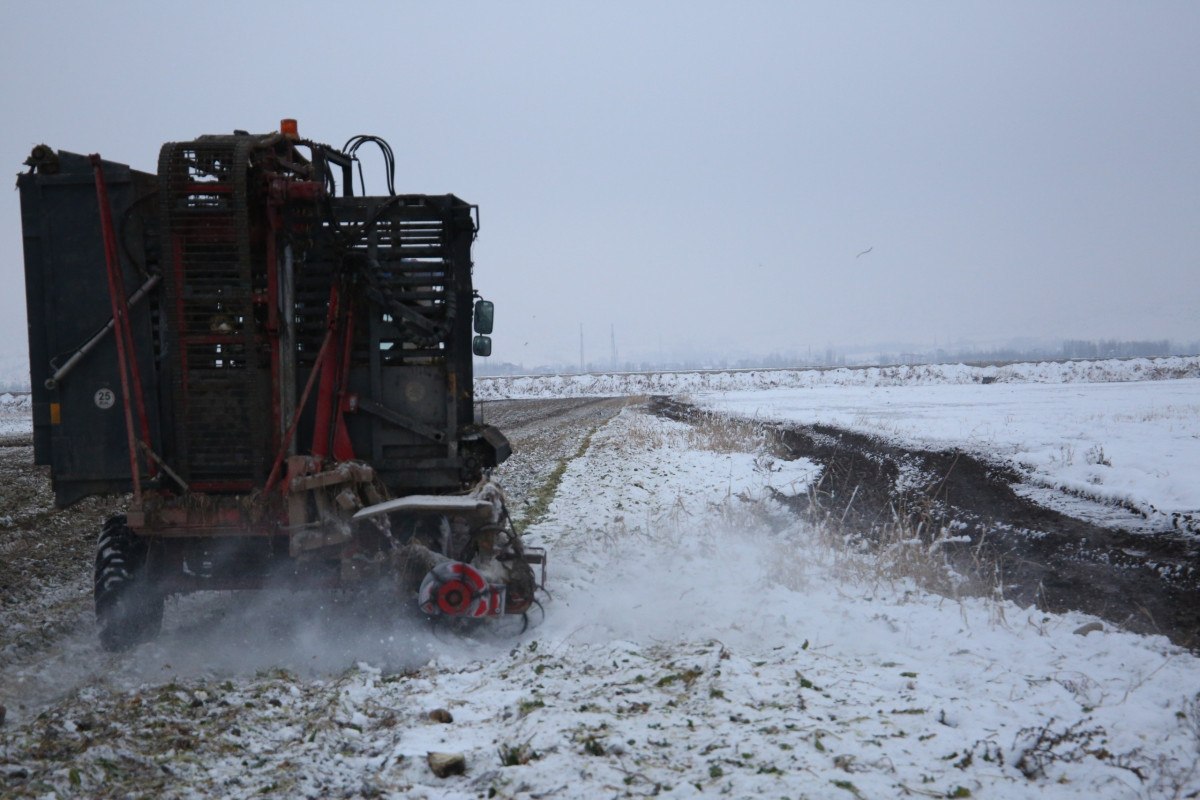 Muş’ta kar altında şeker pancarı hasadı yapıldı