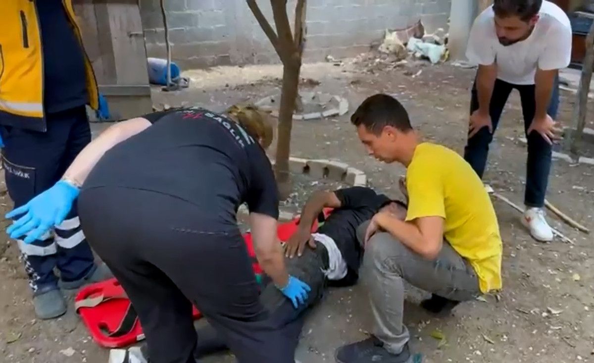 Toprak tabana düşerek bacağı kırılan Cuma Y., sıhhat takımının müdahalesinin akabinde ambulansla hastaneye götürüldü.