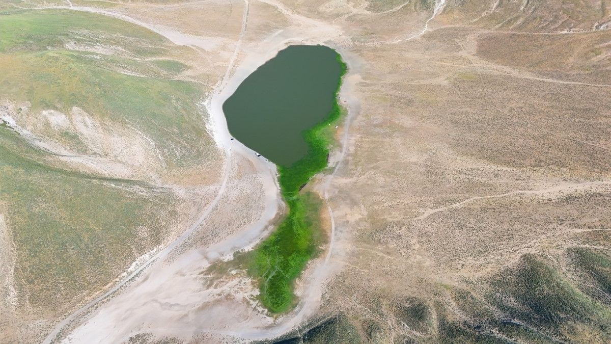 Gölün büyük bir kısmı kururken havadan drone’la çekilen imajlar, su düzeyindeki dramatik düşüşü tüm çıplaklığıyla ortaya koydu.