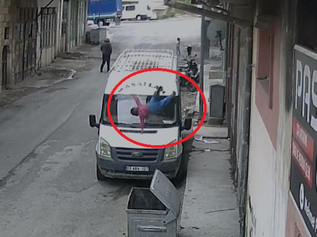 Öte yandan minik çocuğun meskenin penceresinde düştüğü anlar ise güvenlik kamerasına yansıdı.