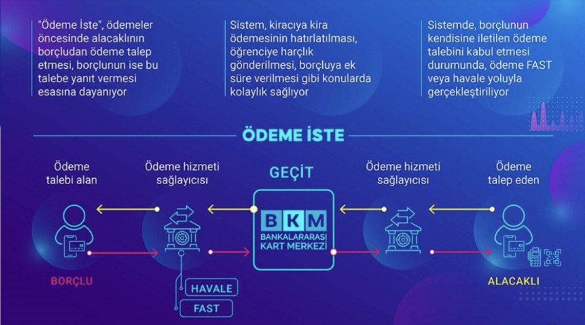 Bankalararası Kart Merkezi (BKM) ve Türkiye Cumhuriyet Merkez Bankası’nın (TCMB) geçen yıl hizmete sunduğu dijital çözüm “Ödeme İste” hizmeti 22 Ocak 2024’te hizmete geçti.