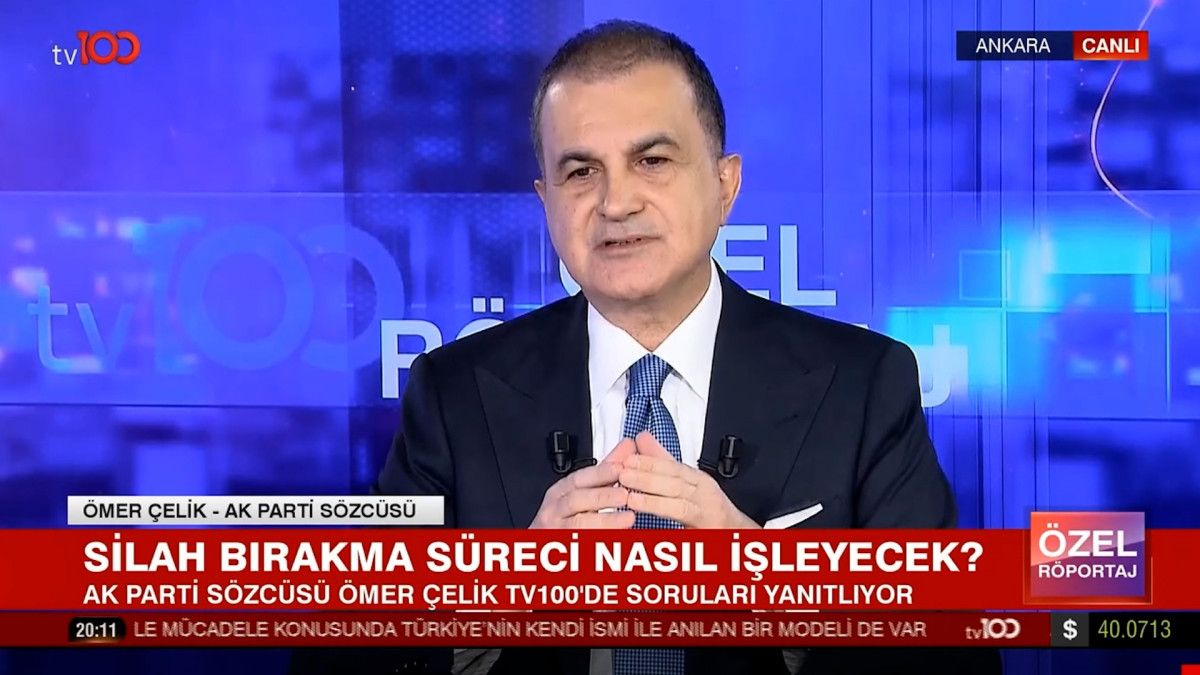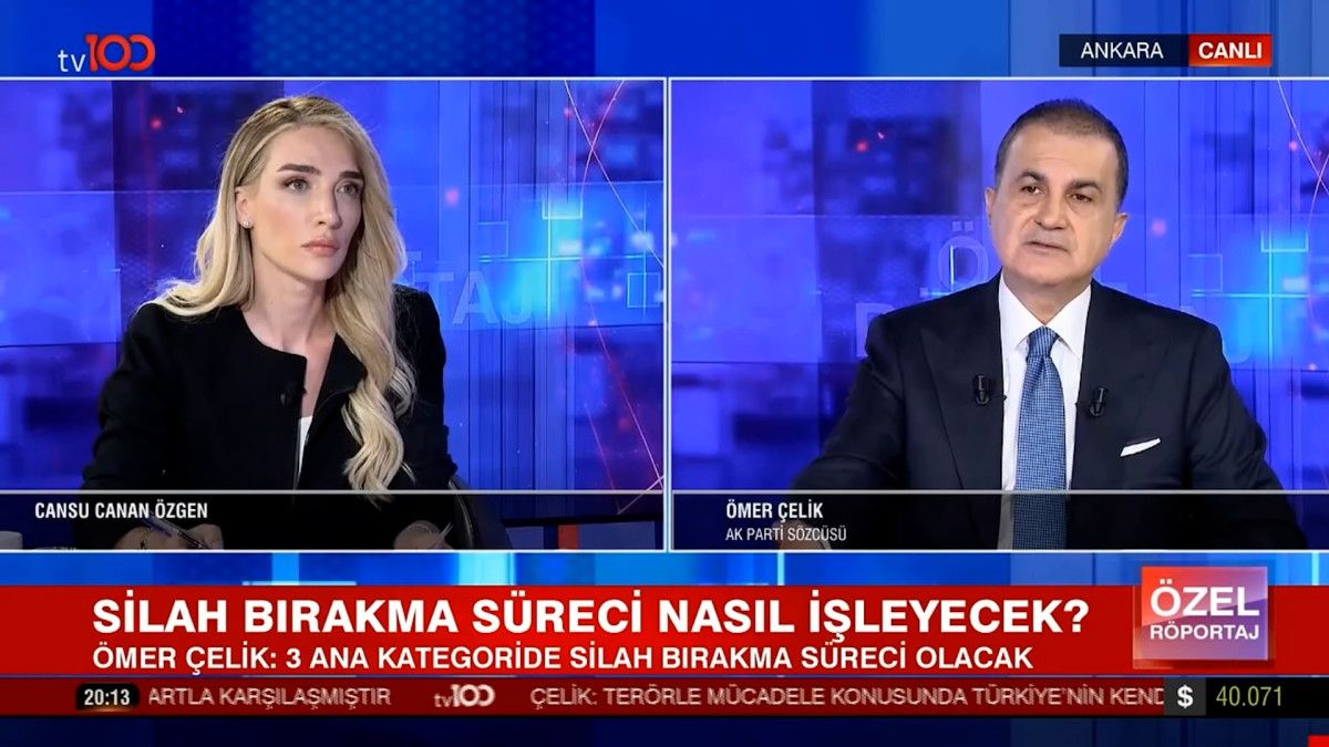 Adım adım terörsüz Türkiye inşası sürerken AK Parti Sözcüsü Ömer Çelik, katıldığı tv100’de Cansu Canan Özgen’in sunduğu Özel Röportaj programında ‘PKK’nın silah bırakma sürecine’ ait merak edilen soruları yanıtladı.