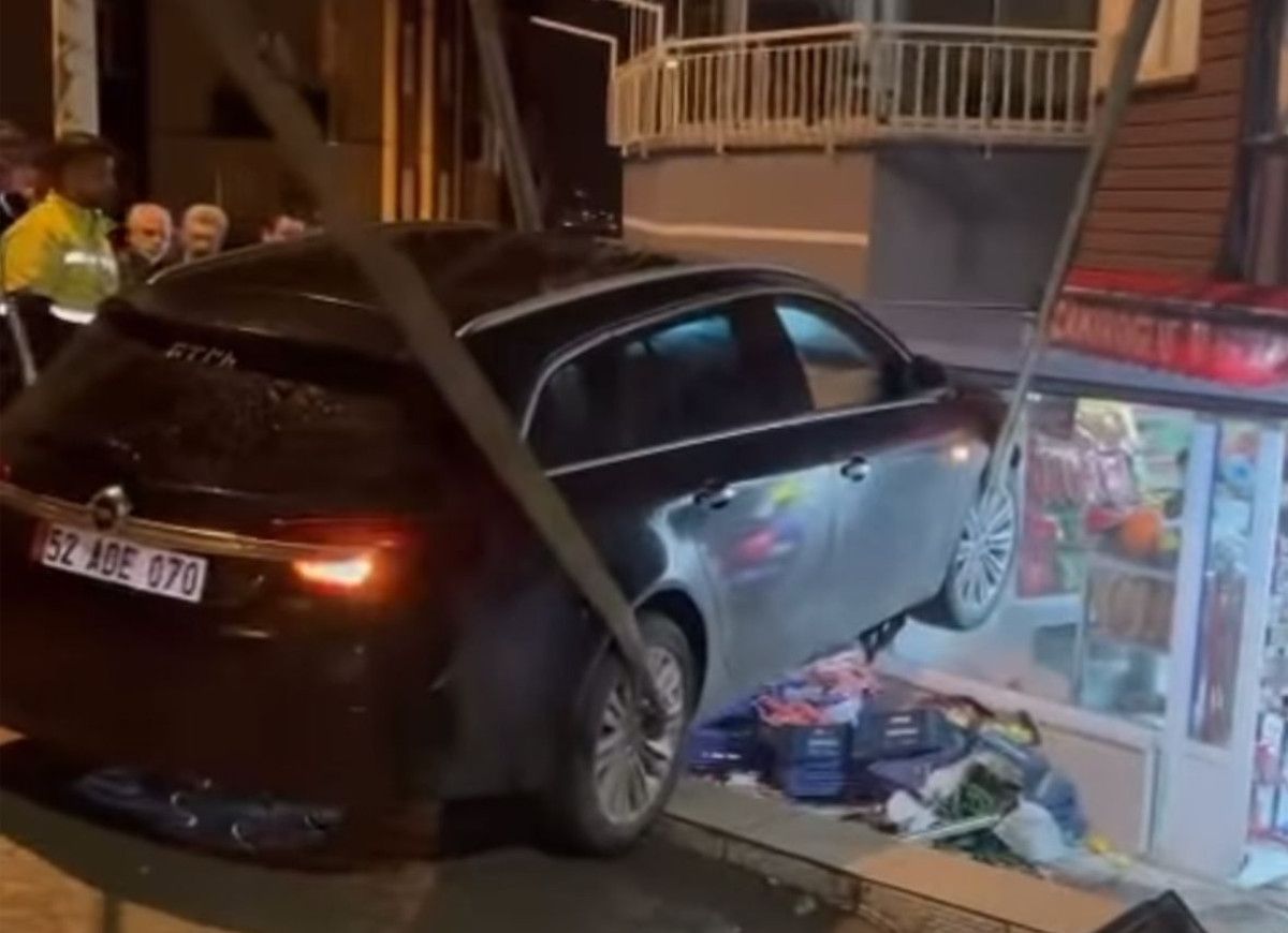 M.Ü.’nün kontrolünü yitirdiği otomobil, savrularak çevredeki bir marketin girişine daldı.