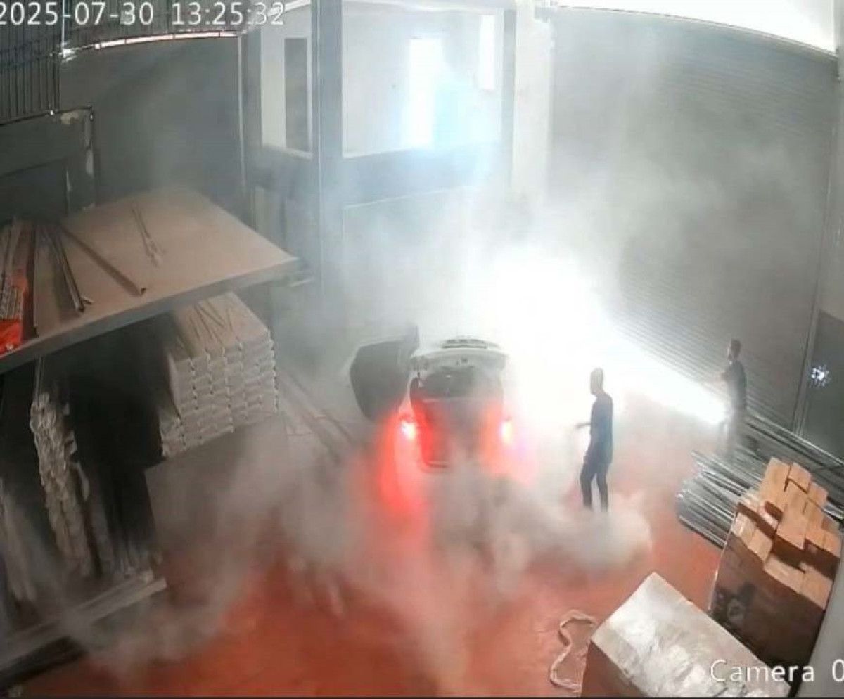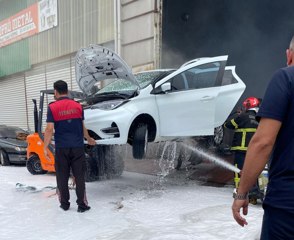Allah razı olsun devletimizin 3 tane itfaiyesi geldi. 3 itfaiye 2 saat uğraşmasına karşın söndüremedi. Servisini de aradık, bu otomobille ilgili yapacak bir şey yok mu dediğimizde ‘Bataryalı araçlar, batarya bitene kadar yanar’ dediler. Suyun içine koysan da yanar diyor. Bunu da öğrenmiş olduk. Gece olsaydı Allah korusun işlerimiz yanabilirdi.