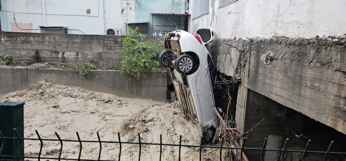 Taşma sonucu park halindeki 7 araç dere yatağına sürüklendi, kimi tarım toprakları de sular altında kaldı.