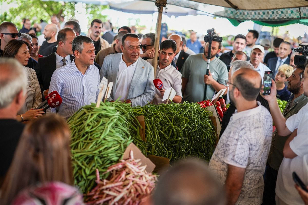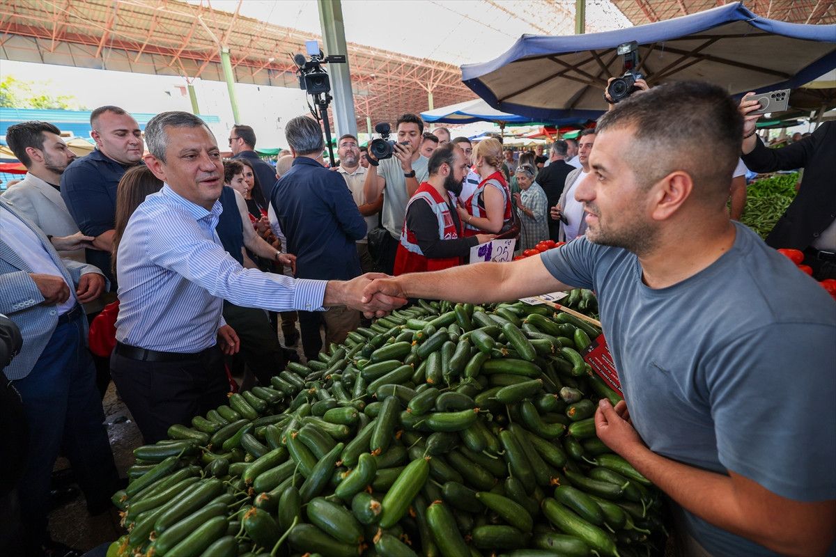 CHP Genel Başkanı Özgür Özel, Yenimahalle’deki semt pazarında esnafla bir ortaya geldi.