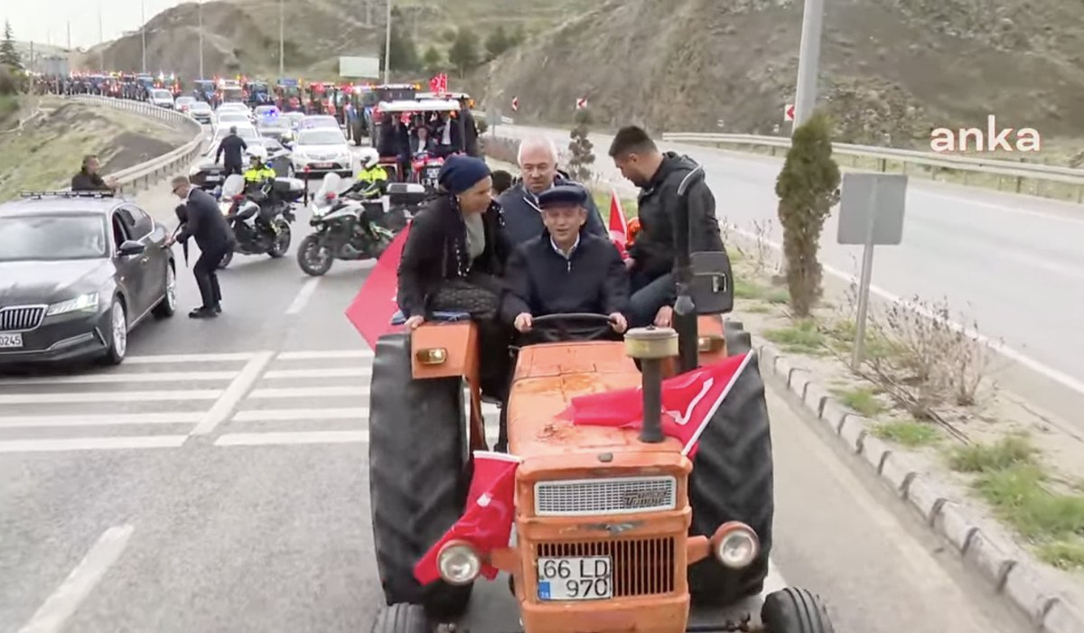 Çocukluğunun traktör üzerinde geçtiğini söyleyen Özel, 6 kilometrelik yolu traktör kullanarak geldi ve miting alanına ulaştı.