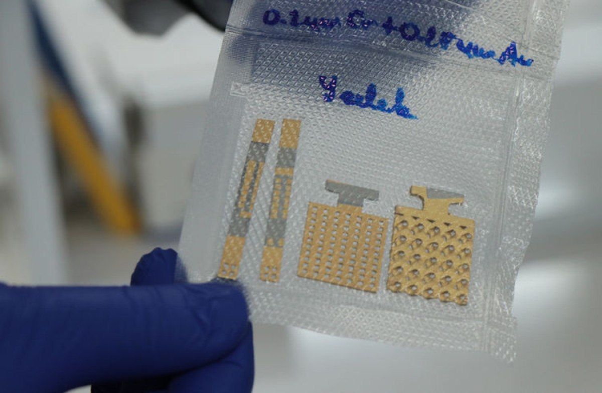 Bunlar kendi bilgisayar kodlarımızla tasarımlarını oluşturduğumuz sonra üç boyutlu yazıcılarla metaller ve iletken polimerler kullanarak grafen ve bakır katkılı olarak ürettiğimiz elektrotlar. Bu anlamda milli elektrotlar diyebiliriz. Yurt dışından aldığımız ve yaklaşık 150 dolara mal edilen elektrotları ülkemizde çok daha ekonomik olarak 35 dolar maliyetle geliştirmiş durumdayız.