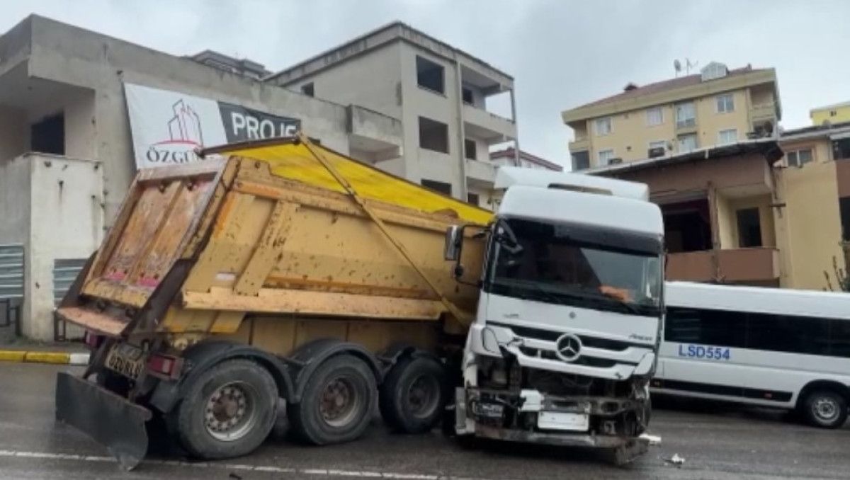 İddiaya nazaran, şoförünün direksiyon hâkimiyetini kaybettiği hafriyat kamyonu, süratle yokuş aşağı inerken park halindeki bir panelvana ve çabucak akabinde bir servis minibüsüne çarptı. Büyük bir gürültüyle gerçekleşen kazada, her iki araçta da önemli hasar oluştu.