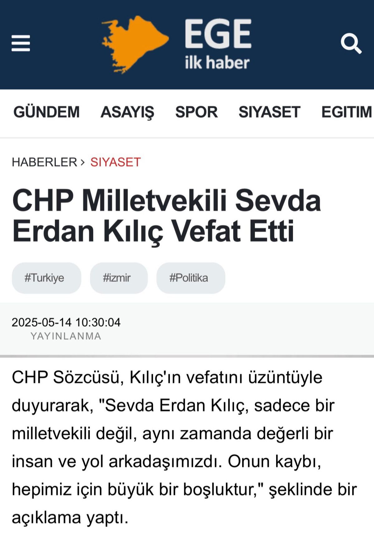 Geçtiğimiz günlerde bir haber sitesi, CHP sözcüsü Deniz Yücel’in, İzmir Milletvekili Sevda Erdan Kılıç’ın hayatını kaybettiğine yönelik bir açıklama yaptığı haberini yayınladı.