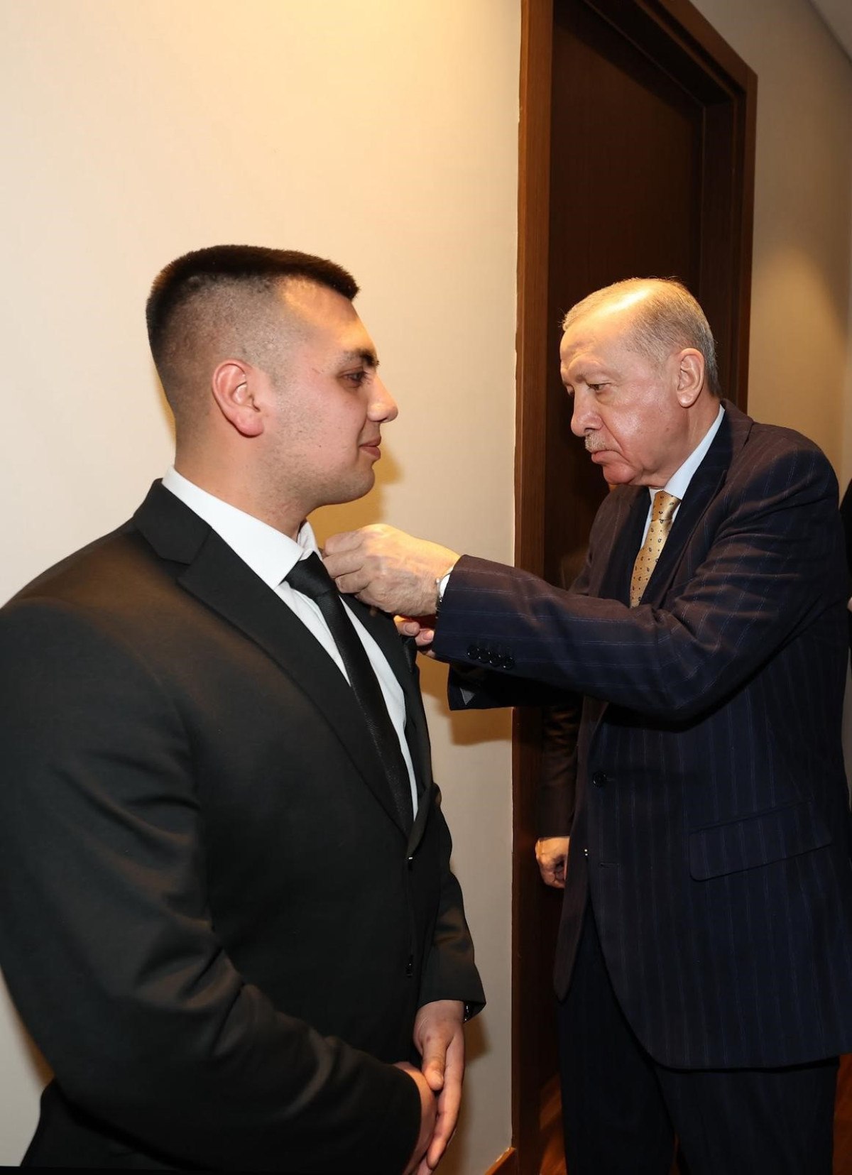 CUMHURBAŞKANI ERDOĞAN, ADAŞINA ROZETİNİ TAKTI