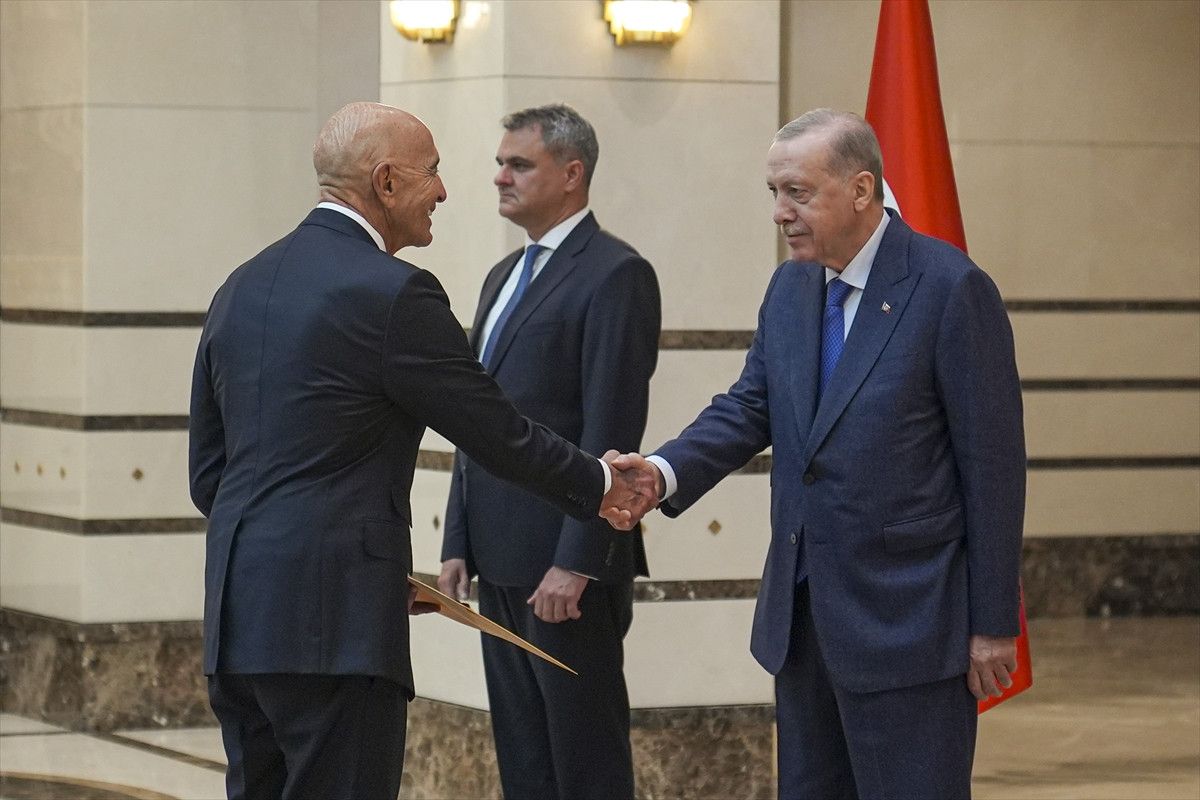 Yeni Zelanda’nın Ankara Büyükelçisi Greg David Lewis, Angola Büyükelçisi Joao Salvador Dos Santos Neto ve ABD Büyükelçisi Thomas Joseph Barrack, Cumhurbaşkanı Erdoğan’a resmi vazifelerine başlamak üzere itimat mektuplarını takdim etti. Merasimde büyükelçilik heyetlerinin üyeleri de hazır bulundu.