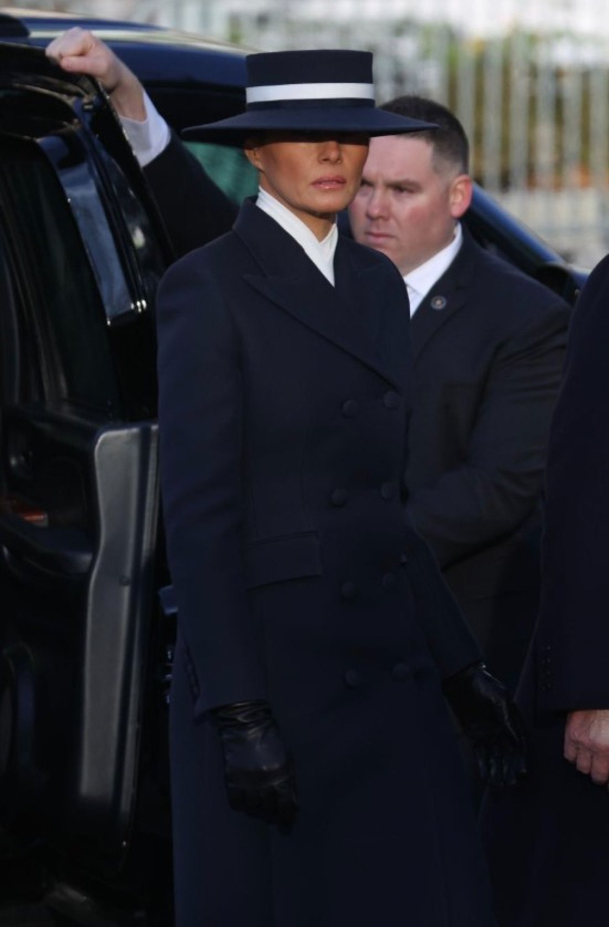 First Lady Melania Trump’ın kıyafeti de çok konuşuldu. Melania’nın giydiği şapka dikkat çekerken, Donald Trump, şapka nedeniyle eşini öpmekte zorlandı.