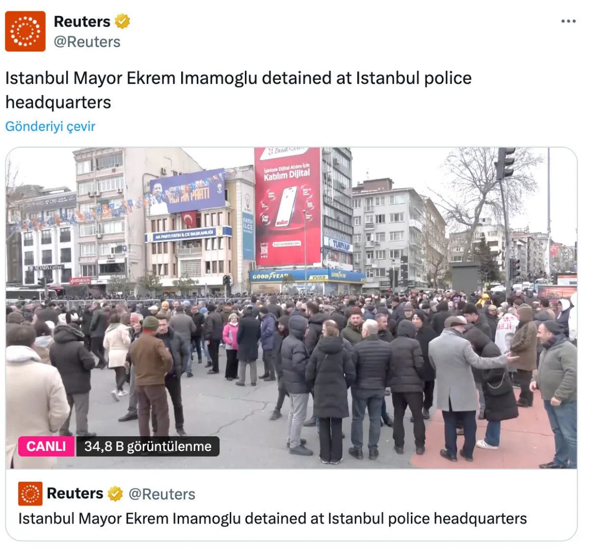 Reuters, daha evvel İmamoğlu hakkında verilen mahkeme kararlarını da “muhalefete darbe” başlıklarıyla servis etmiş ve bu süreçteki tüm olayları ve iktidar zıddı konuşmaları canı yayınlarına taşımıştı.
