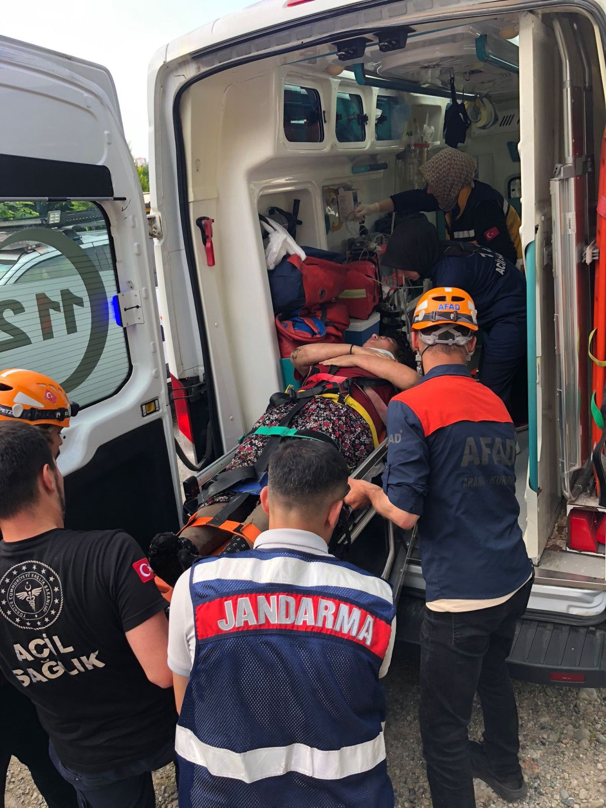 Yaralı bayan, bulunduğu yerden çıkartılarak sıhhat takımlarına teslim edildi.