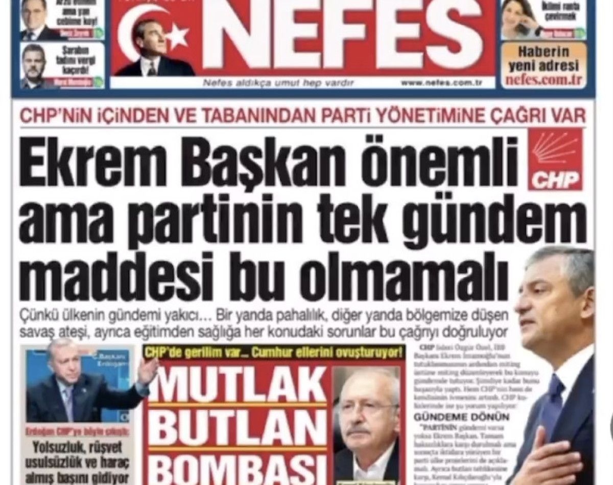Diyor ki Nefes gazetesinin manşeti, ‘Ekrem Lider kıymetli lakin partinin tek gündem hususu bu olmamalı’ diye bir manşet.