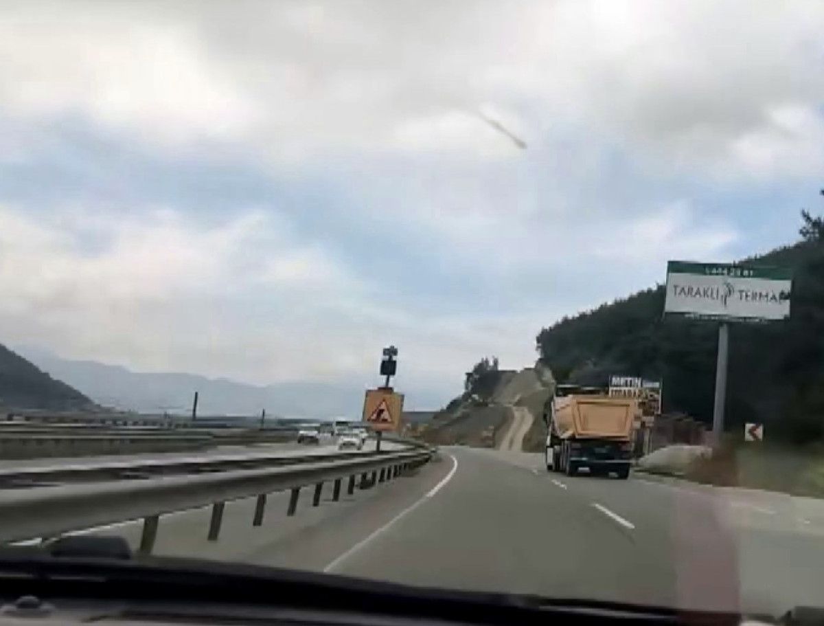 Görüntü, sık sık tır-kamyon üzere büyük araç kazalarıyla gündeme gelen ve Türkiye’nin kıymetli geçiş güzergahlarından birinde kaydedildi.