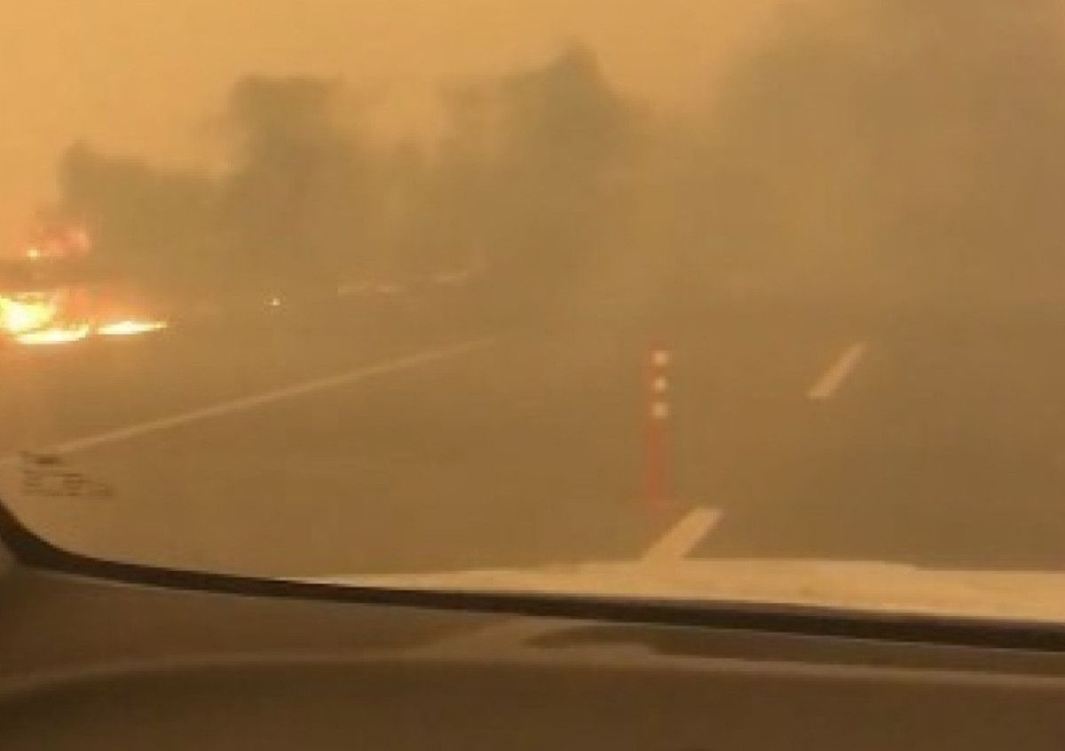 Görüntülerde alevlerin yola kadar indiği ve dumandan görüş aralığının neredeyse sıfıra düştüğü görülürken, araçtaki bir kişinin “Ağabey çıkmamız lazım, ortada kaldık. Allah’ım, sen yardım et, Ya Rabbim. Allah’ım sen büyüksün.” halindeki paniği kayda yansıyor.