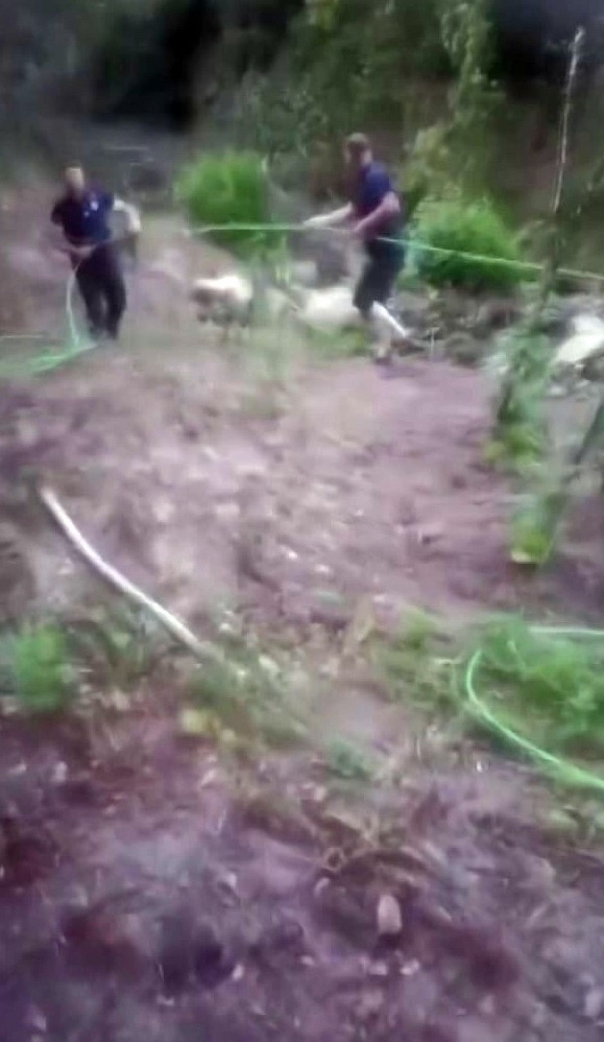 Olay yerinde kaydedilen imajlarda hortumun toprak altından nasıl çıkarıldığı kaydedildi.