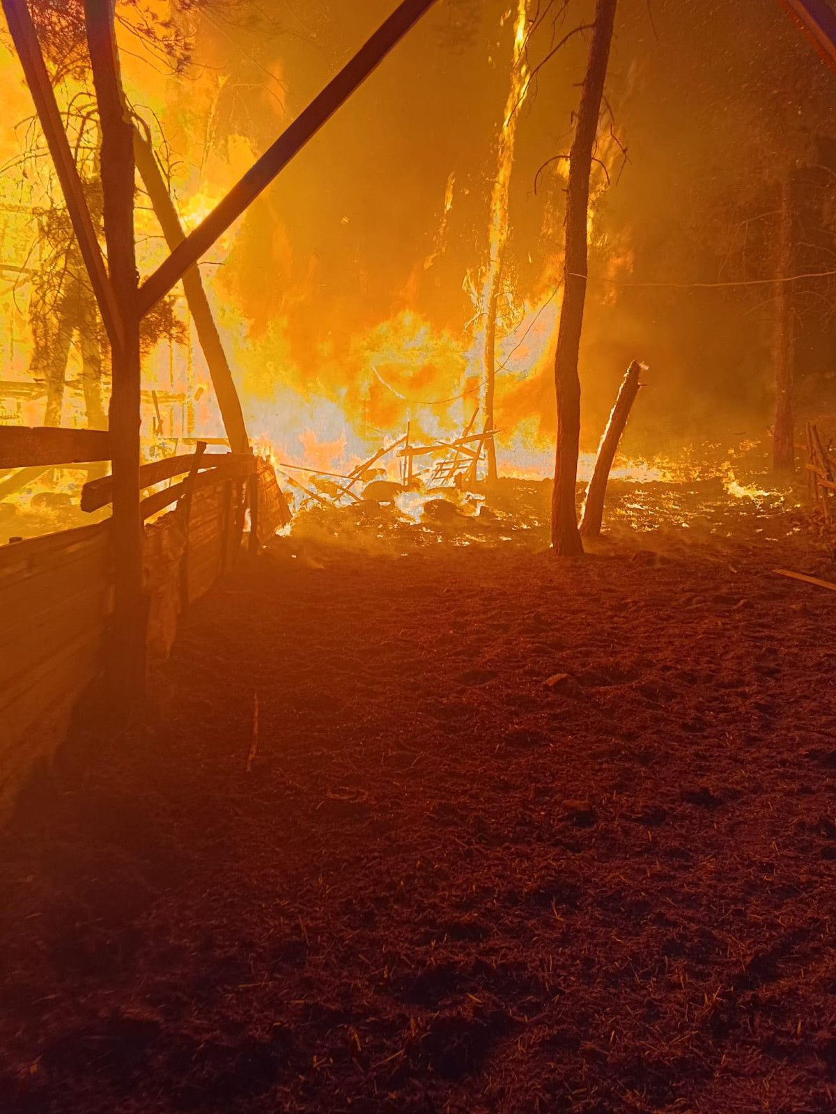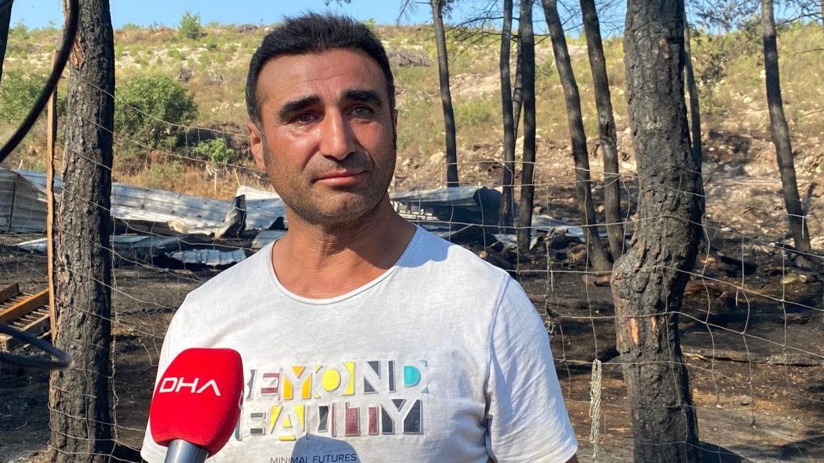Yangını duyup konutundan çıktığında 25 metreye kadar yükselen alevler gördüğünü kaydeden Şahin, “Saman balyaları tutuşmuştu. Alevler çam ağaçlarına daha sonra da içerideki ağılın çatısına ve oradaki bölgeye ulaştı. Koşarak geldim, büyükbaşları çıkardım. Küçükbaşlar için teli koparmaya çalıştım lakin o an çatı çöktü. Hayvanların hepsi başka bir yere dağıldılar ve beni dinlemediler zira şok halindelerdi. Bir anda bütün alev topuna dönen bu alev gerideki ormana sıçradı. Yapacak bir şey yok, 95 koyun küçükbaş vardı. Onların 70 tanesi hamileydi, eylül ayında doğuracaktı.” diye konuştu.