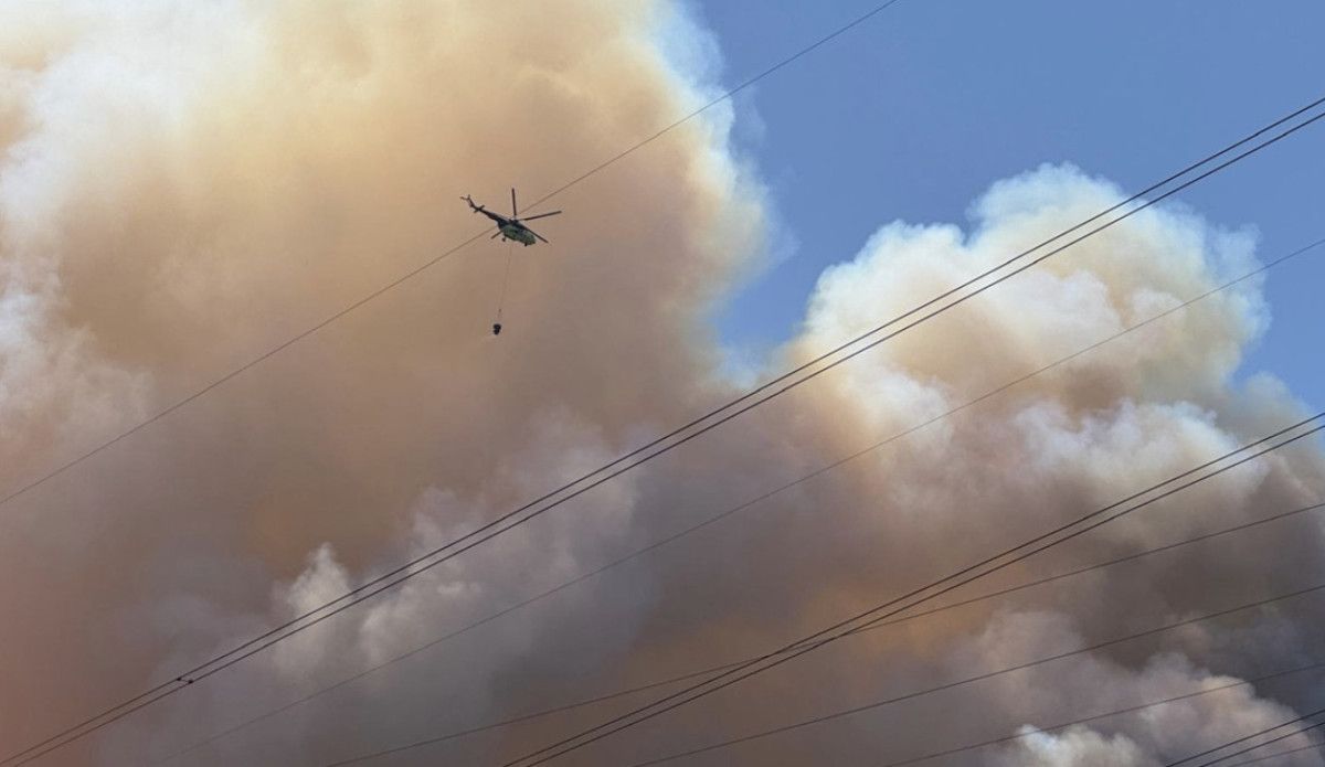 Dik ve eğimli toprakta alevlerle uğraşın sıkıntı olması nedeniyle bölgeye yangın söndürme helikopteri de yönlendirildi.
