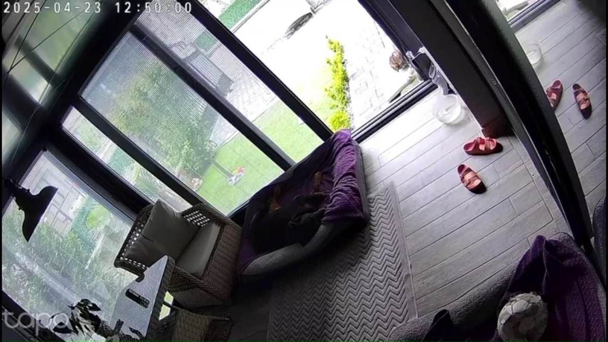 Görüntülerde; biri bahçede, biri yatağında yatan iki köpeğin sarsıntı ile birlikte ayağa kalkıp kaçışarak havlamaları yer aldı.