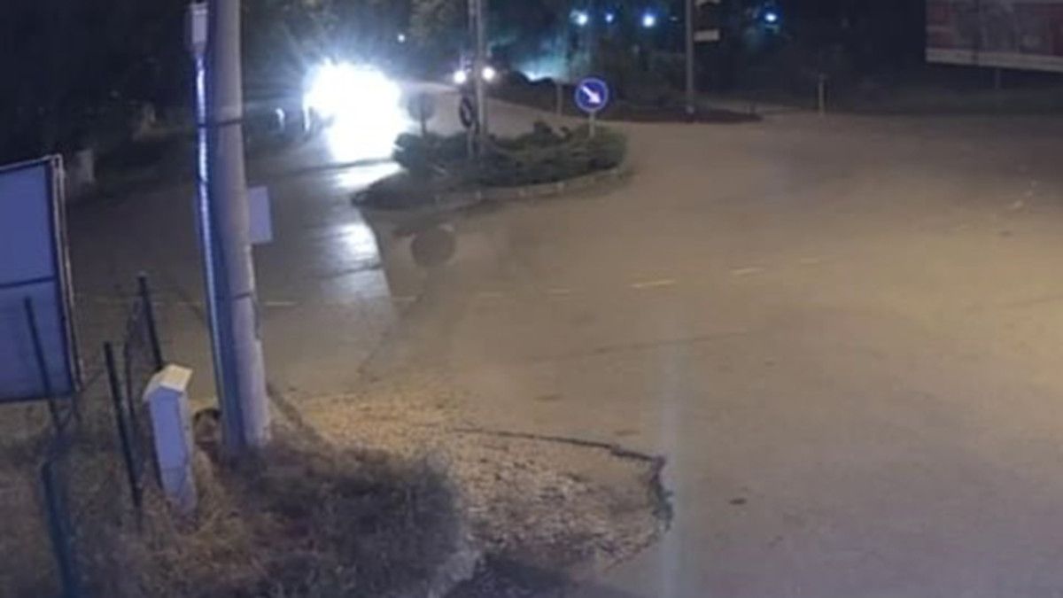 Görüntülerde arabanın dönel kavşakta drift yapması, aracın denetimden çıkarak ağaca çarpması yer alıyor.