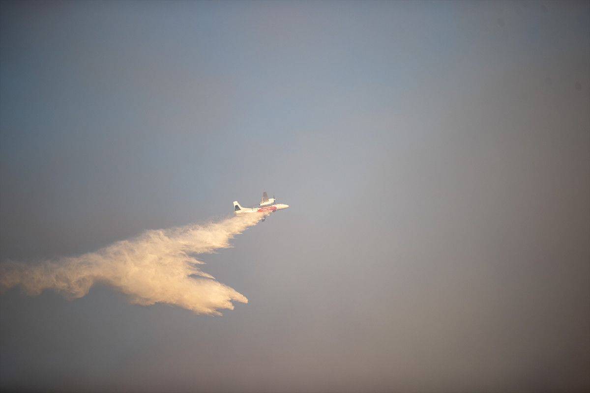 Vatandaşların da tankerleriyle su taşıdığı söndürme çalışmaları kapsamında havadan ve karadan müdahale sürüyor.