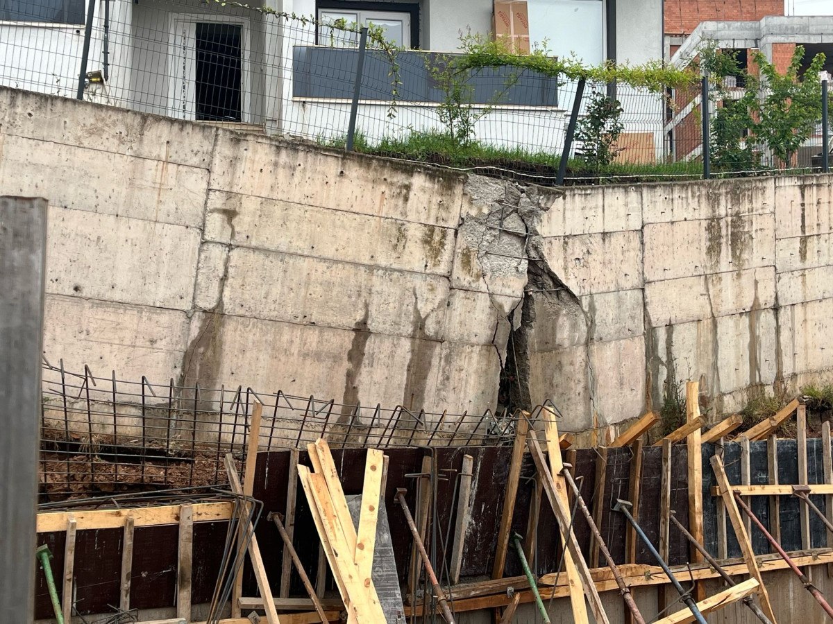 Yapımına başlanan binanın temel alanı yanındaki istinat duvarında kırık oluştuğu, tahliye edilen apartman önünde de çökmeler meydana geldiği görüldü.