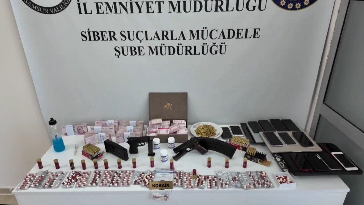 Şüphelilere ilişkin ikametlerde yapılan aramalarda, hatadan elde edildiği bedellendirilen 1 milyon 230 bin 600 TL nakit para, 720 adet sentetik ecza, 1,7 gram kokain, 2 adet ruhsatsız tabanca, 187 adet fişek, 30 adet kartuş, çok sayıda sim kart ve dijital gereç ele geçirildi.